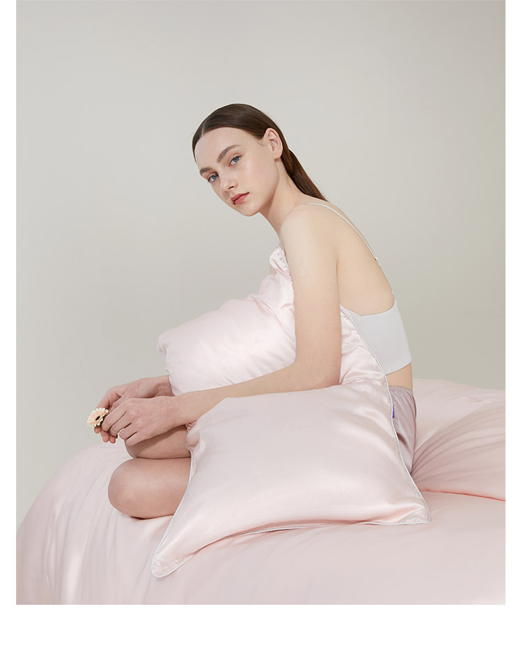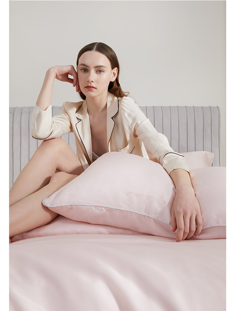 纯棉60支长绒棉贡缎枕套纯色双拼色枕头套信封式全棉枕芯套一对装