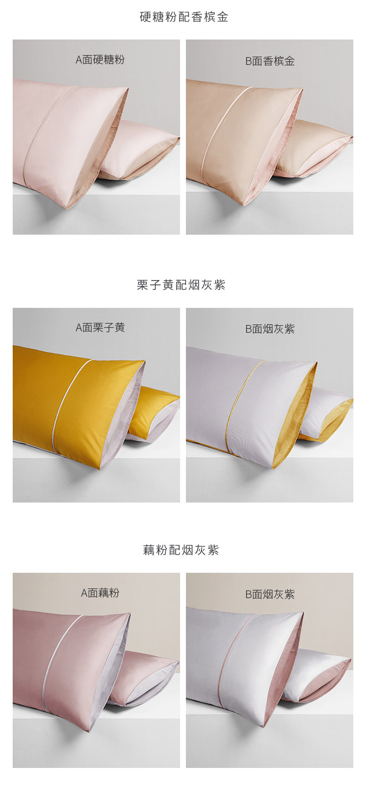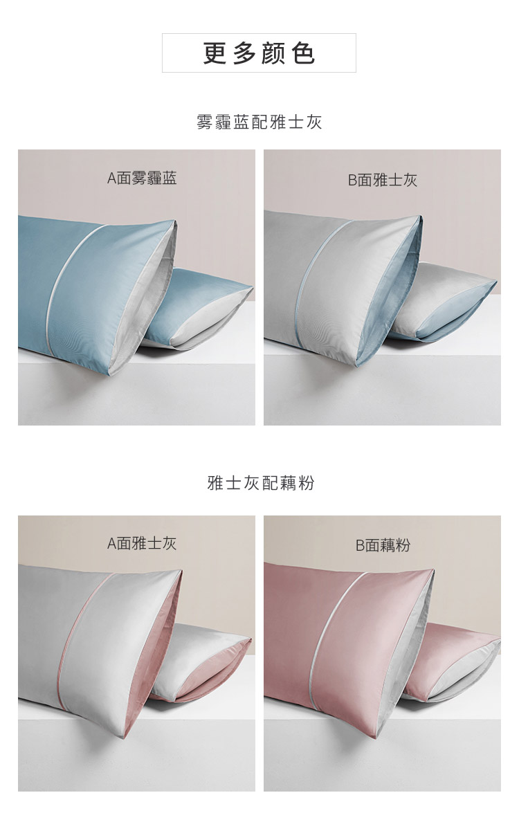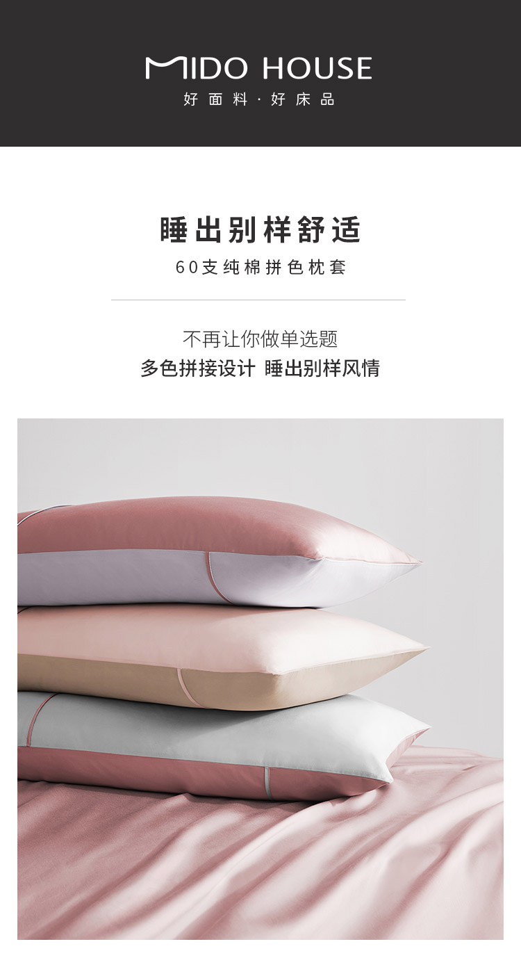 / 纯棉60支长绒棉贡缎枕套纯色双拼色枕头套信封式全棉枕芯套一对装