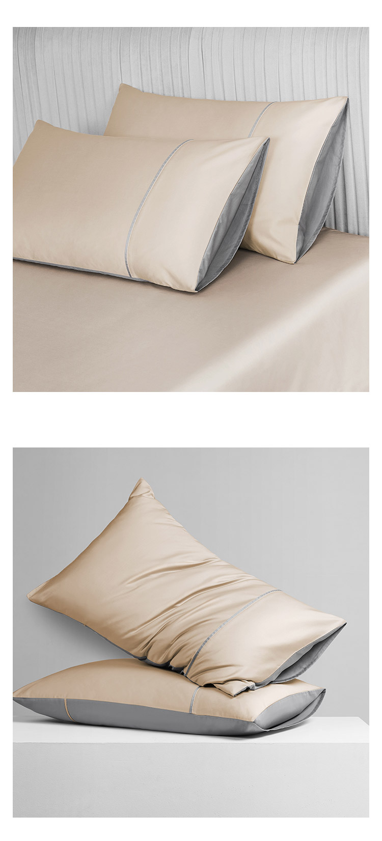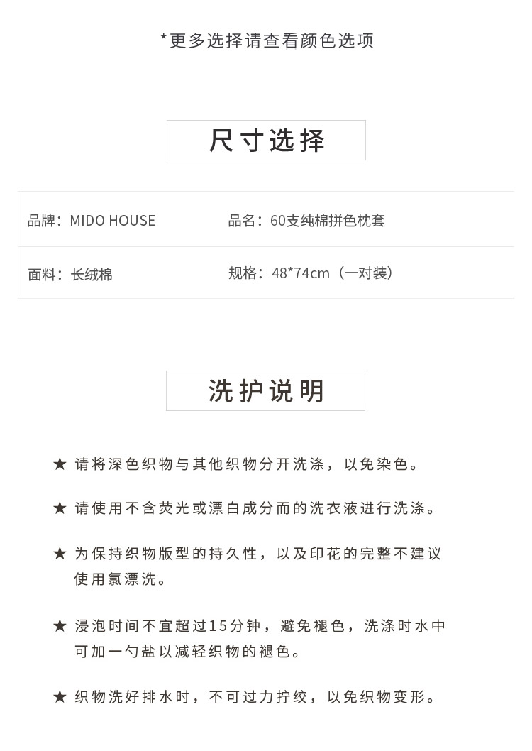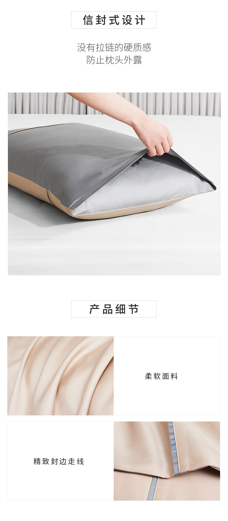/ 纯棉60支长绒棉贡缎枕套纯色双拼色枕头套信封式全棉枕芯套一对装