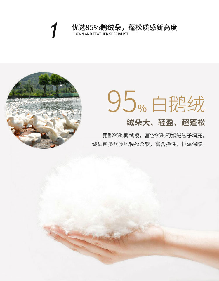 / 羽绒被95白鹅绒冬被羽绒被芯冬季被子100支匹马棉贡缎纯棉鹅绒被