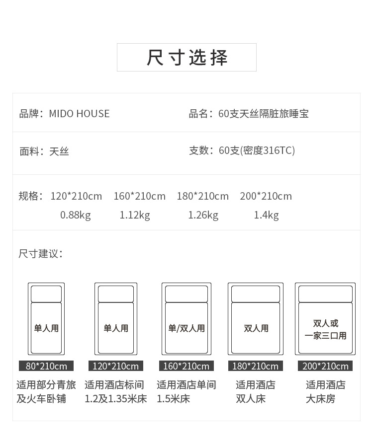 MIDO HOUSE 旅睡宝 100支匹马棉酒店隔脏睡袋