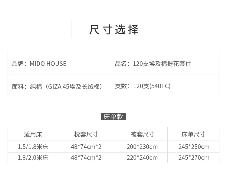 MIDO HOUSE 高端120支匹马棉提花五星酒店四件套