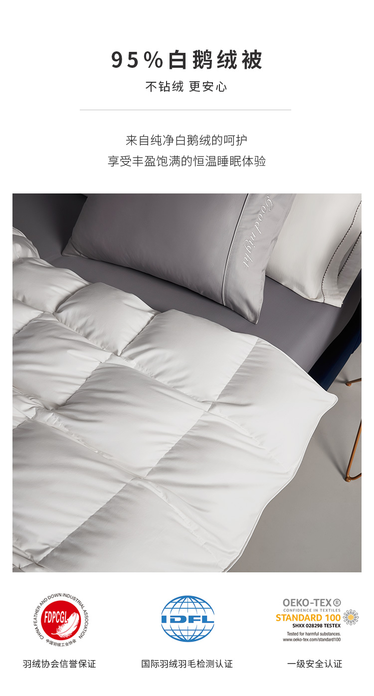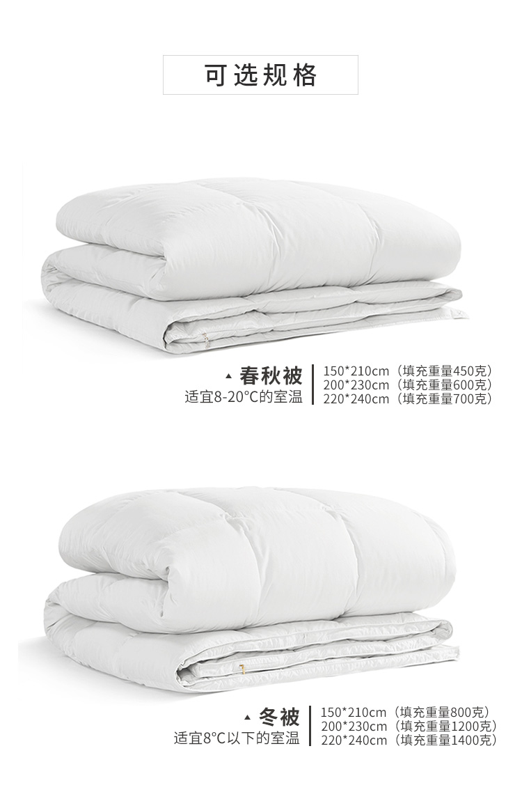 静音95白鹅绒被单人冬被子五星级酒店双人加厚保暖春秋被芯羽绒被