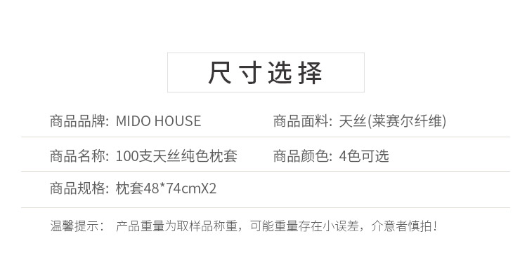 MIDO HOUSE 夏季枕套 60支双面天丝枕头套一对装 48*74cm