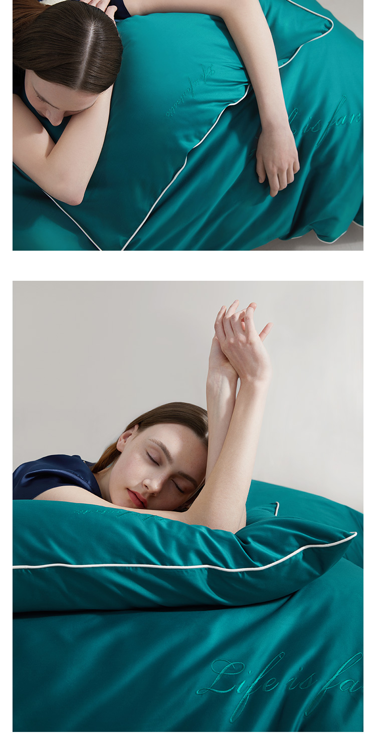 纯棉60支长绒棉贡缎枕套纯色双拼色枕头套信封式全棉枕芯套一对装