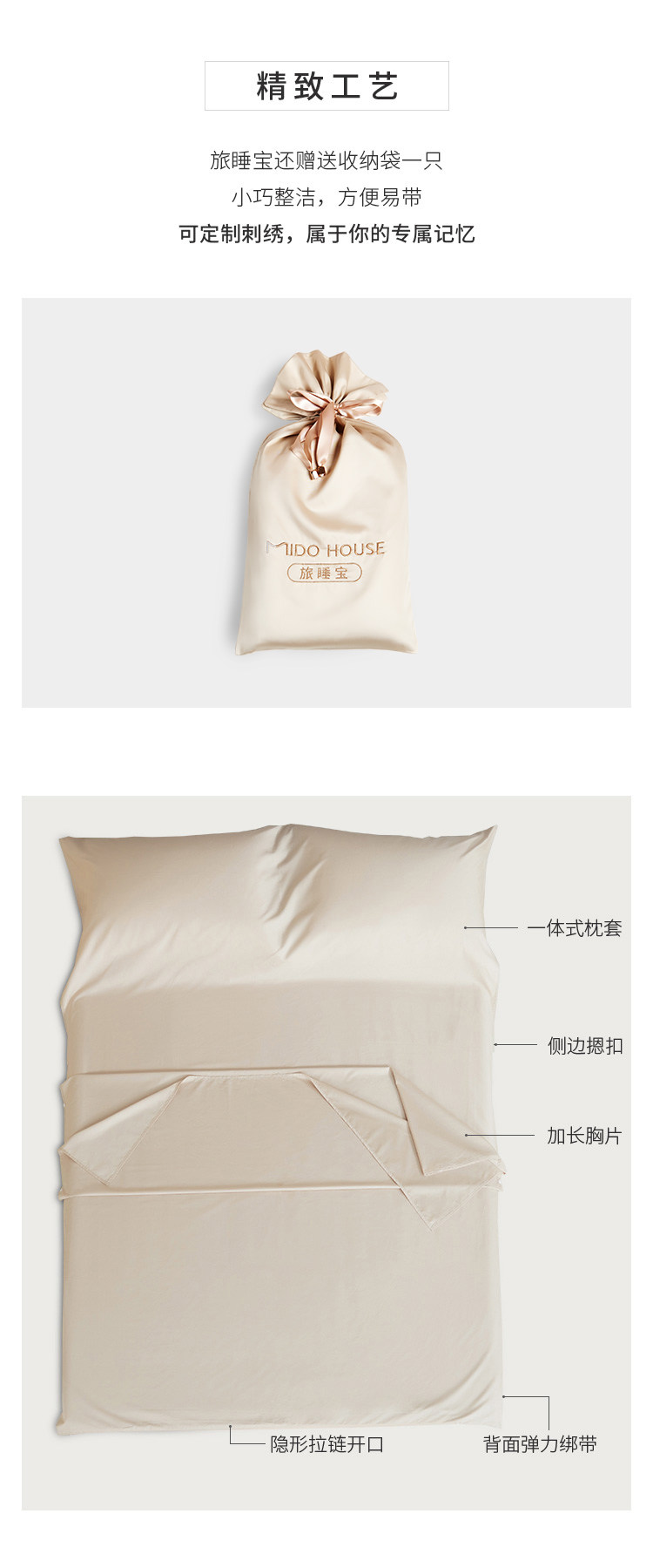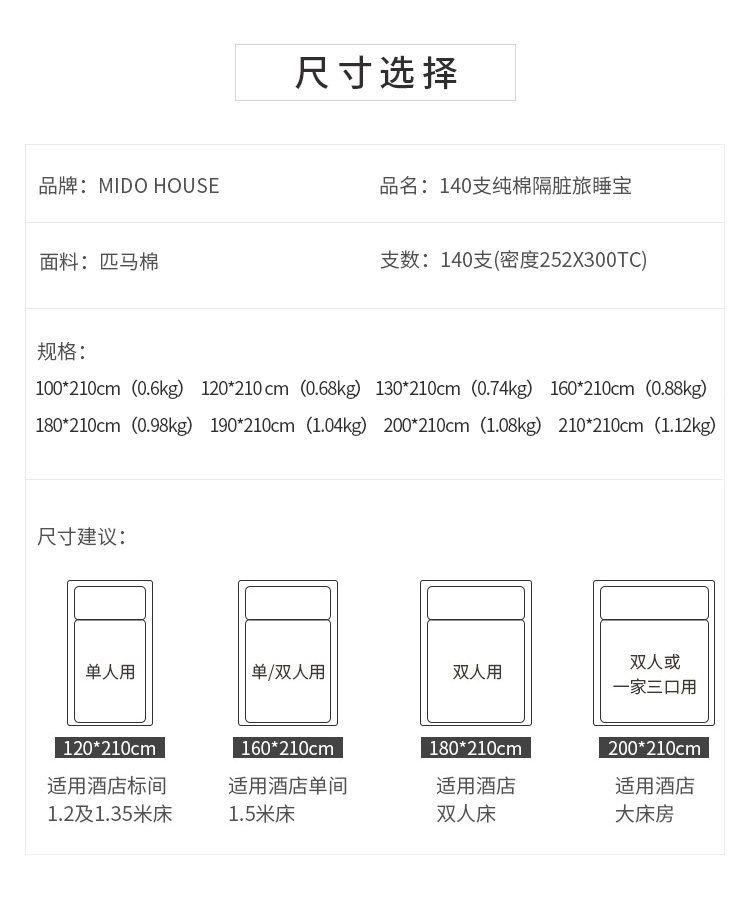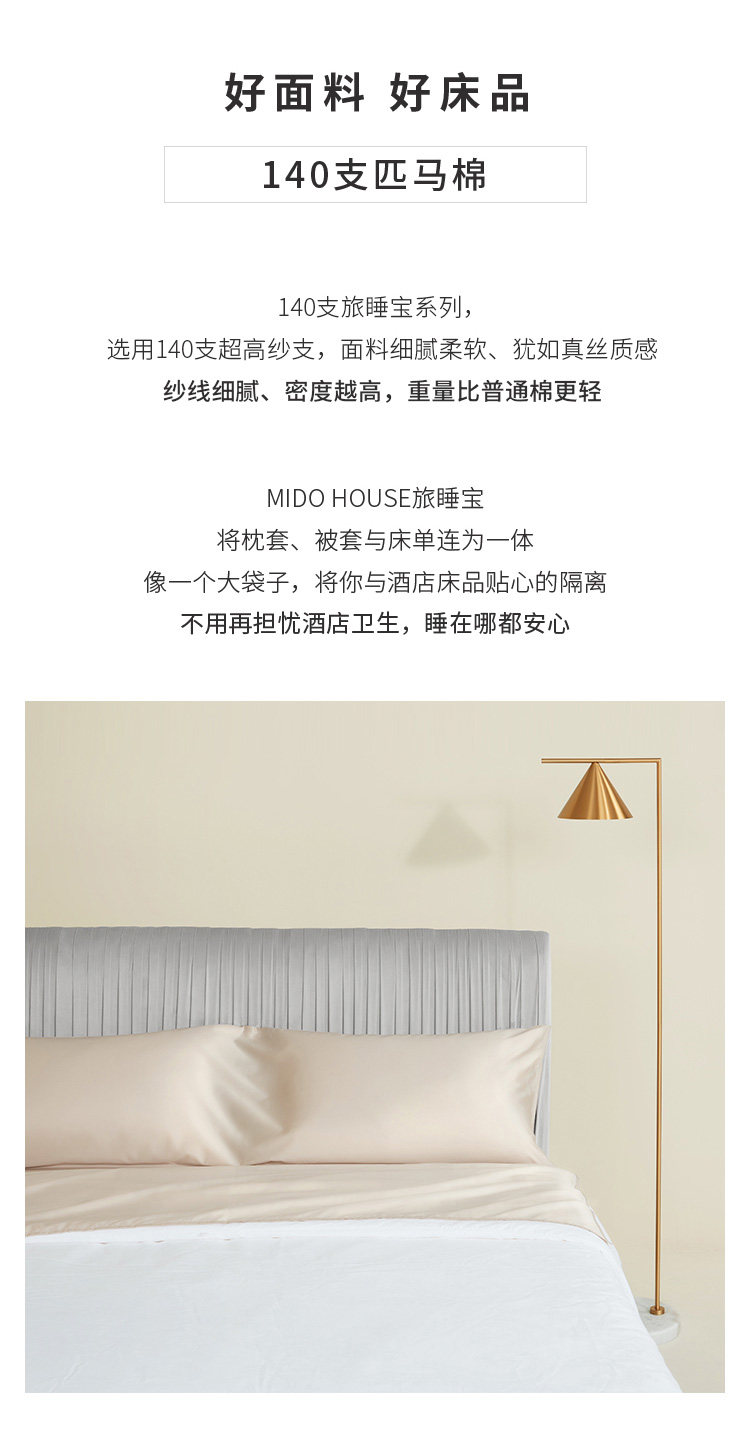 MIDO HOUSE 100S匹马棉提花酒店隔脏睡袋600TC高档旅行床单旅睡宝