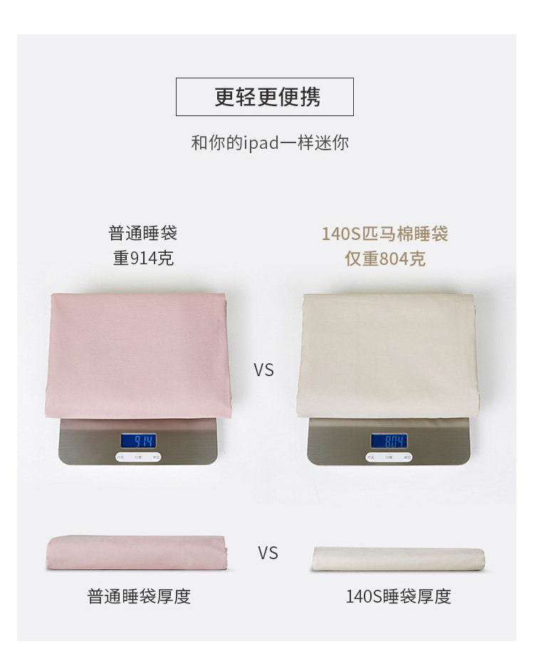 140支美国匹马棉酒店隔脏睡袋 夏季超轻出差旅行床单被罩 旅睡宝