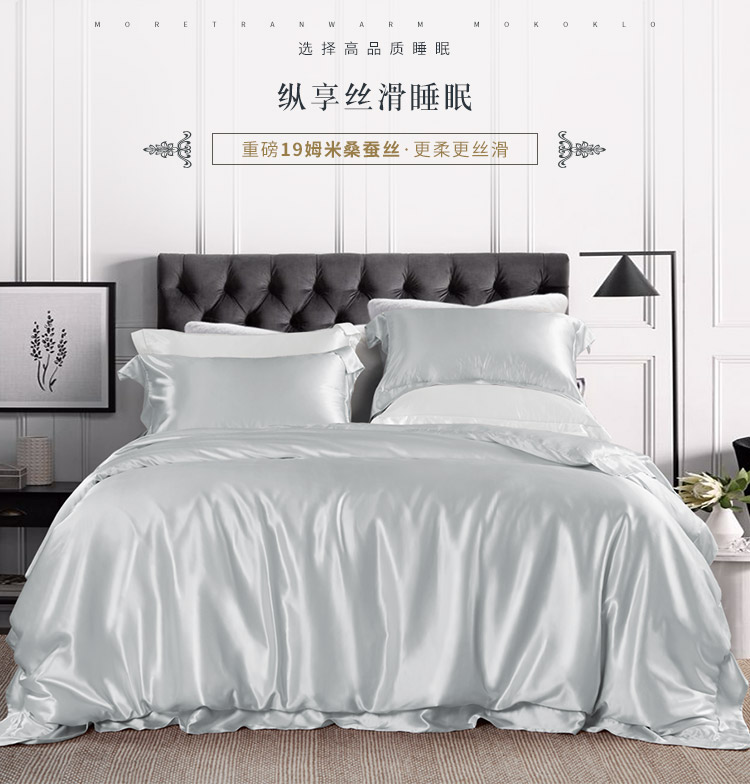 19姆米真丝四件套 100%双面桑蚕丝绸面料 高端被套床单床上用品