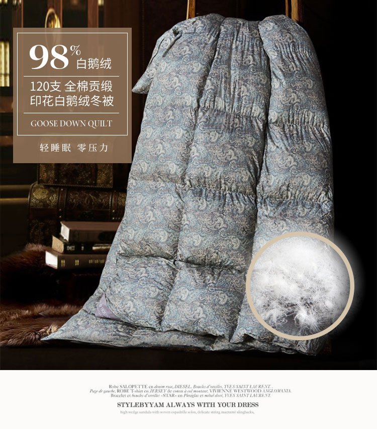 羽绒被95白鹅绒冬被羽绒被芯冬季被子100支匹马棉贡缎纯棉鹅绒被