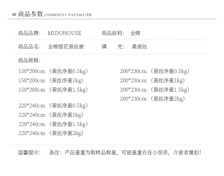 / MIDO HOUSE桑蚕丝被 纯手工定位蚕丝被四季被芯秋冬被子 柔软贴身