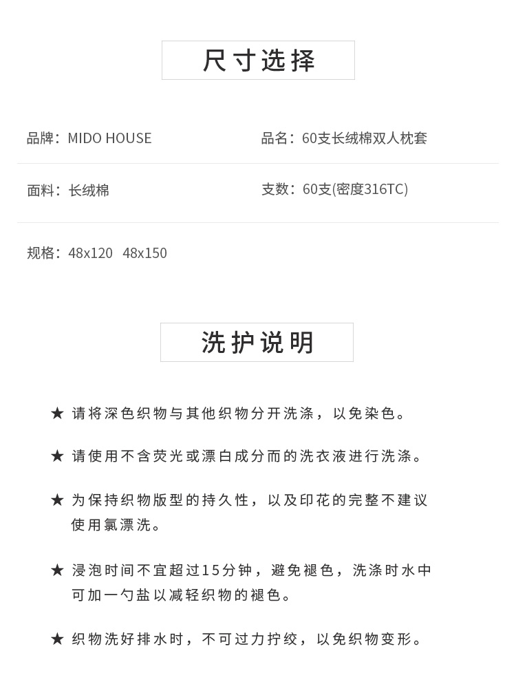 / MIDO HOUSE长枕套60支全棉加长枕头套1.2m/1.5米情侣双人套子单只