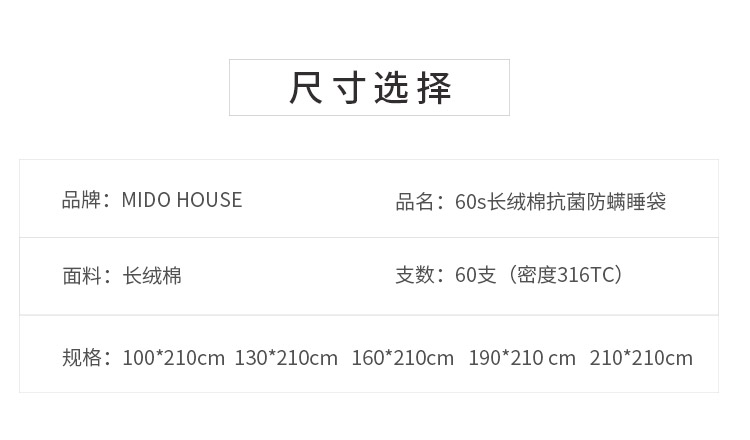 MIDO HOUSE 旅睡宝 100支匹马棉酒店隔脏睡袋
