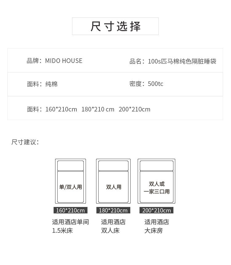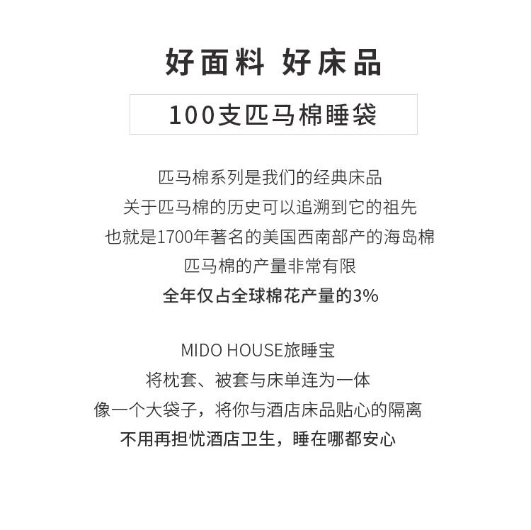 MIDO HOUSE 100S匹马棉提花酒店隔脏睡袋600TC高档旅行床单旅睡宝
