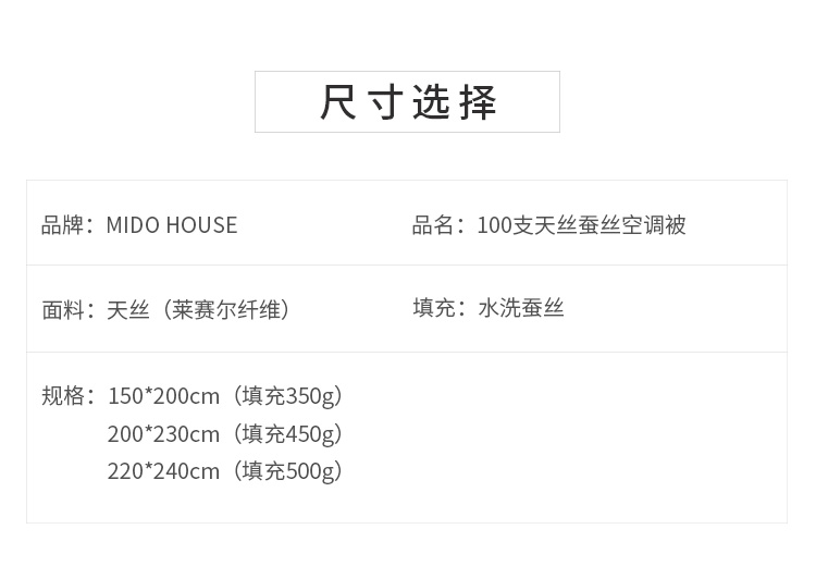 / MIDO HOUSE 春夏新品 高端100支天丝夏凉被 蚕丝空调被 可水洗