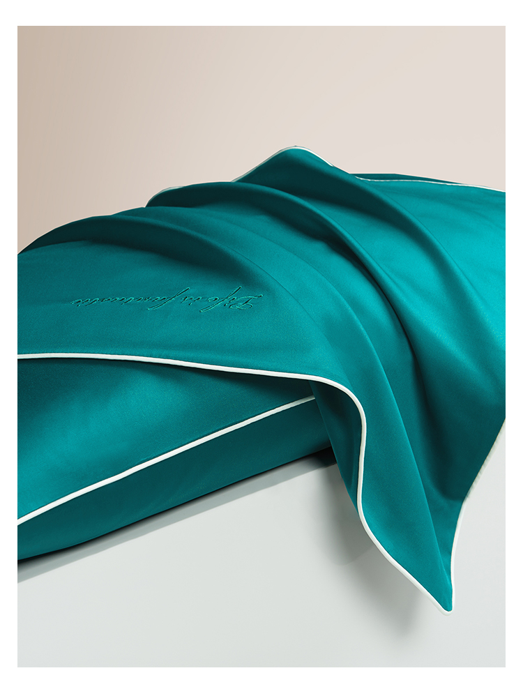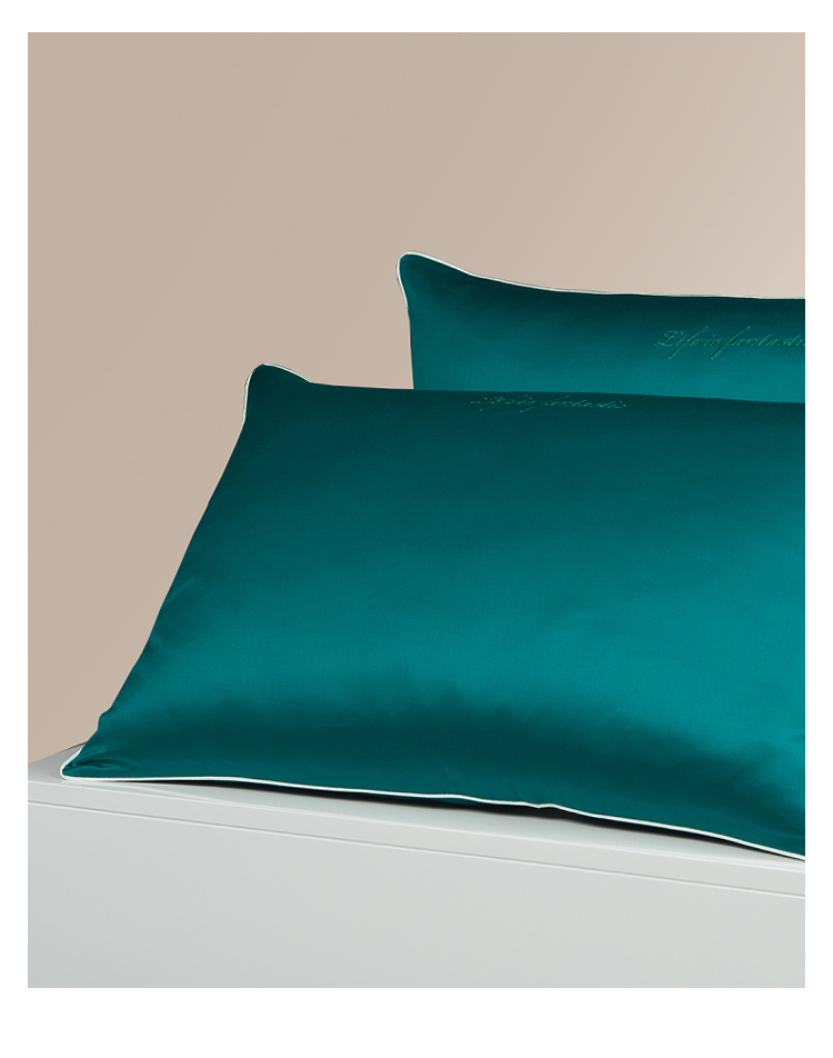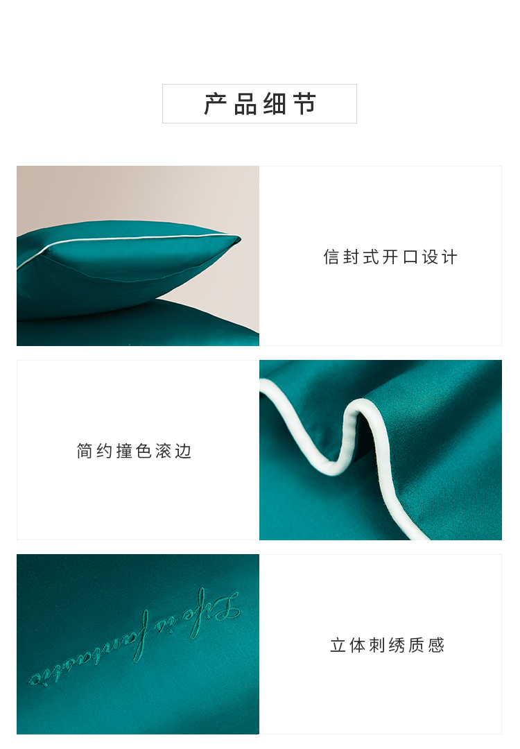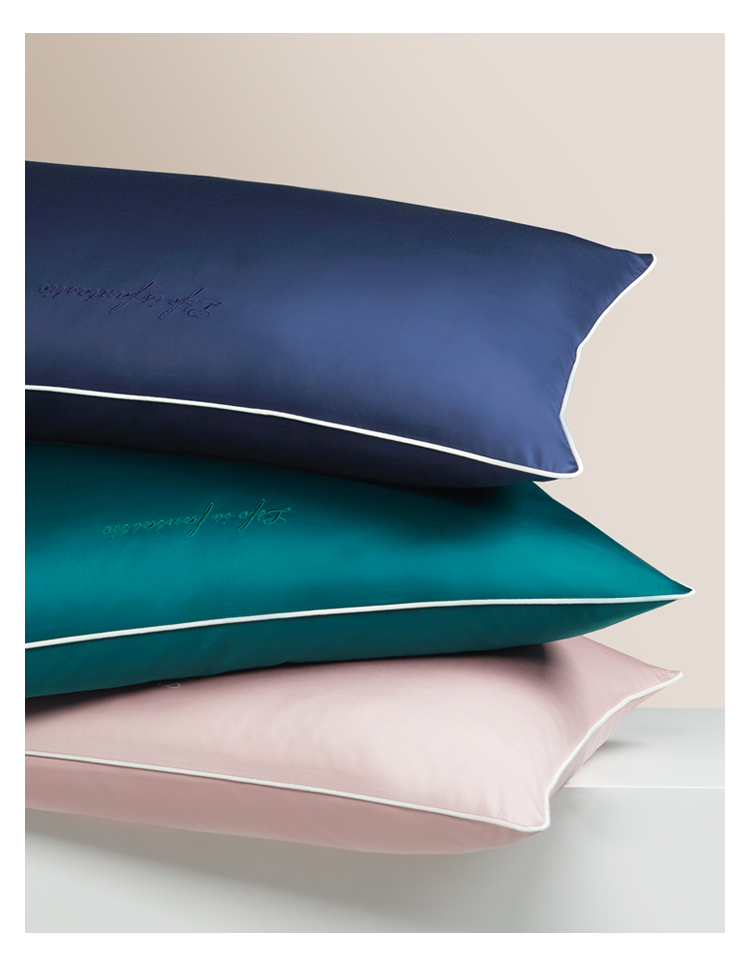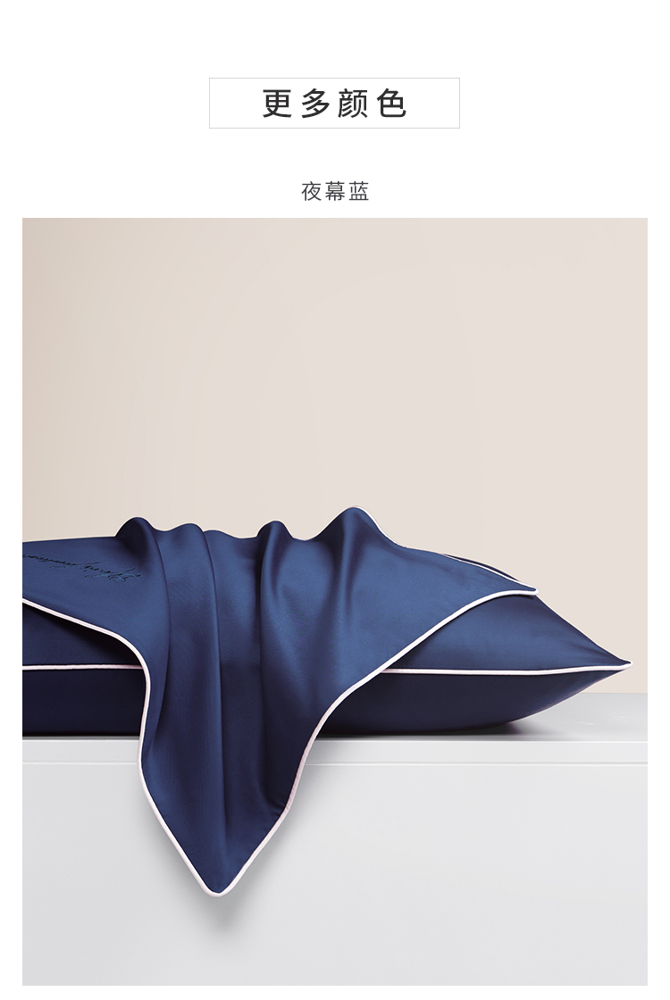 纯棉60支长绒棉贡缎枕套纯色双拼色枕头套信封式全棉枕芯套一对装