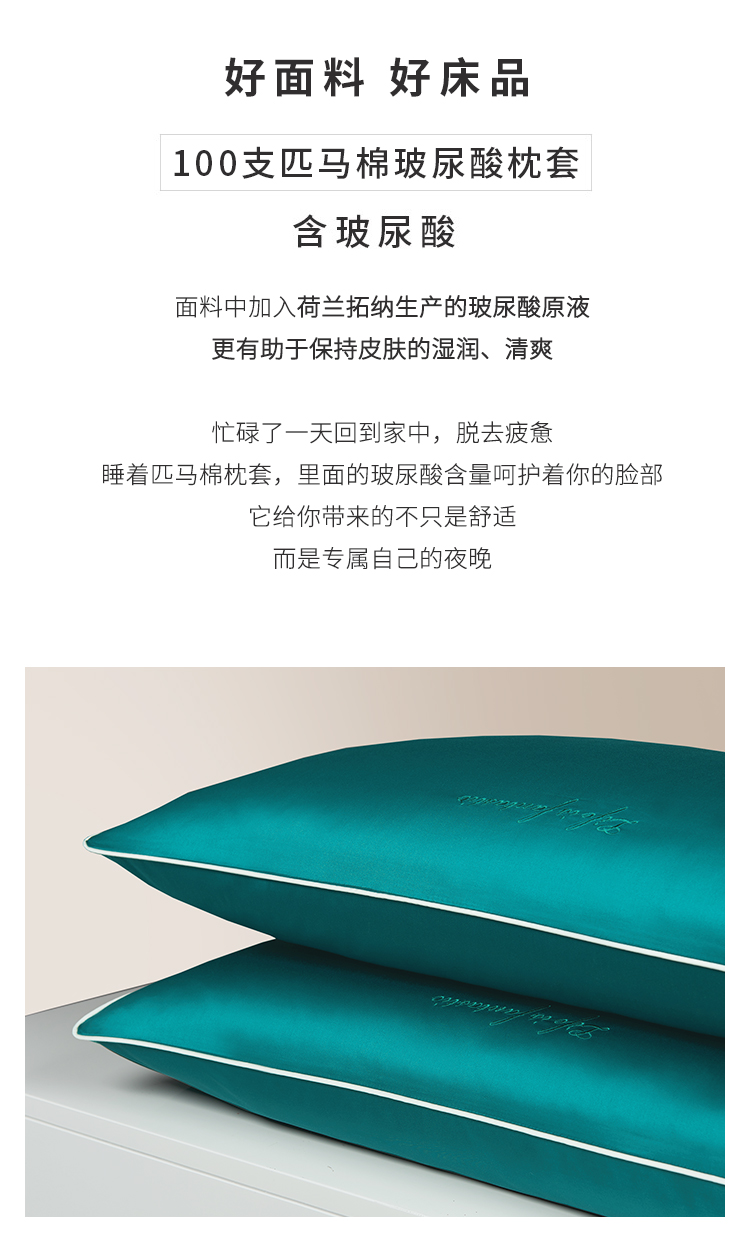 100支匹马棉玻尿酸刺绣枕套 一对装 48*74cm