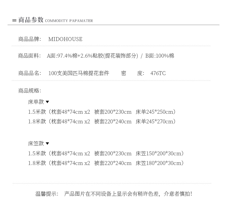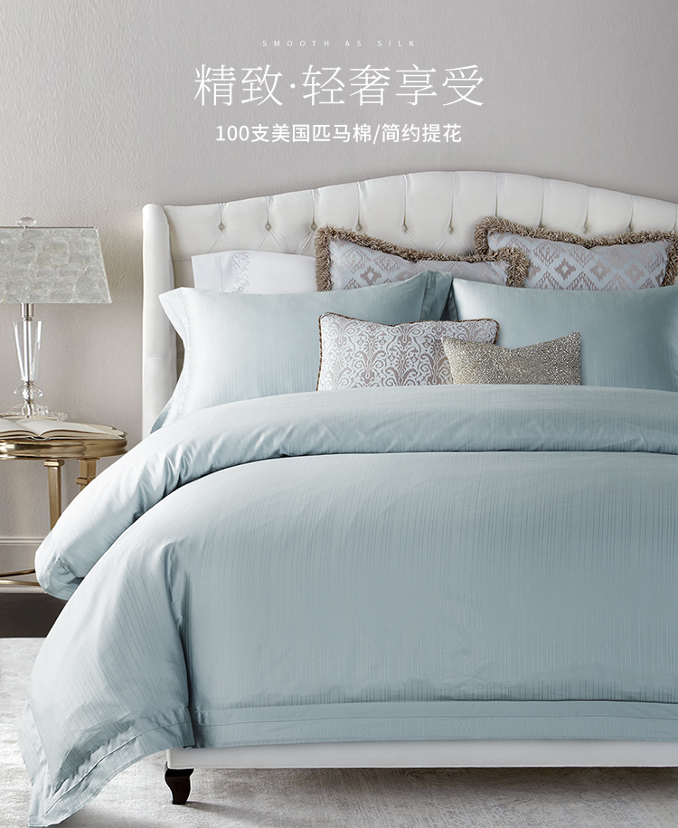 / MIDO HOUSE 高端提花四件套 100支匹马棉纯色床上用品 浅蓝色