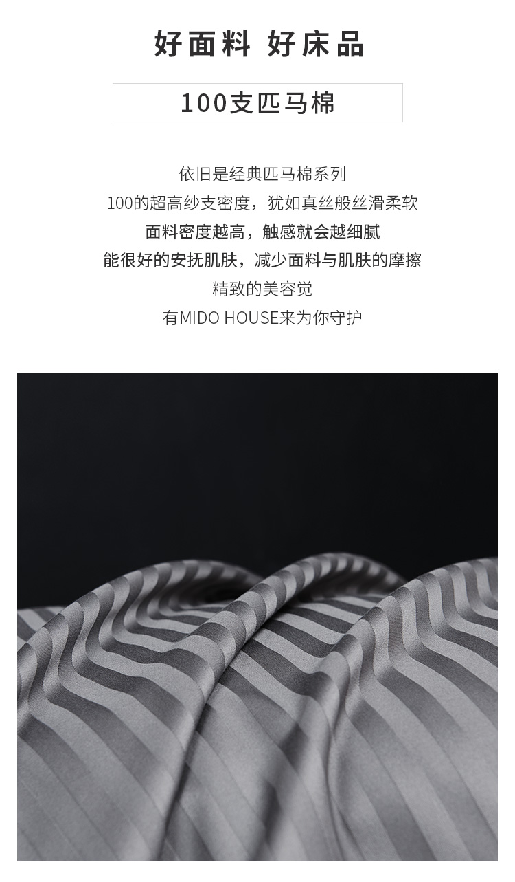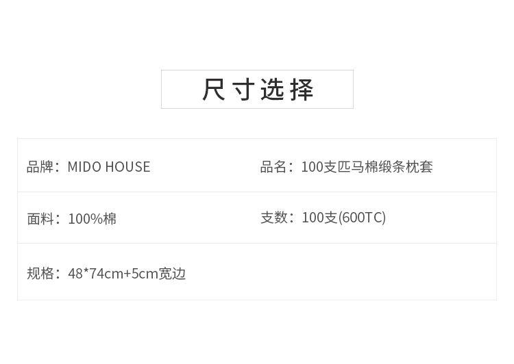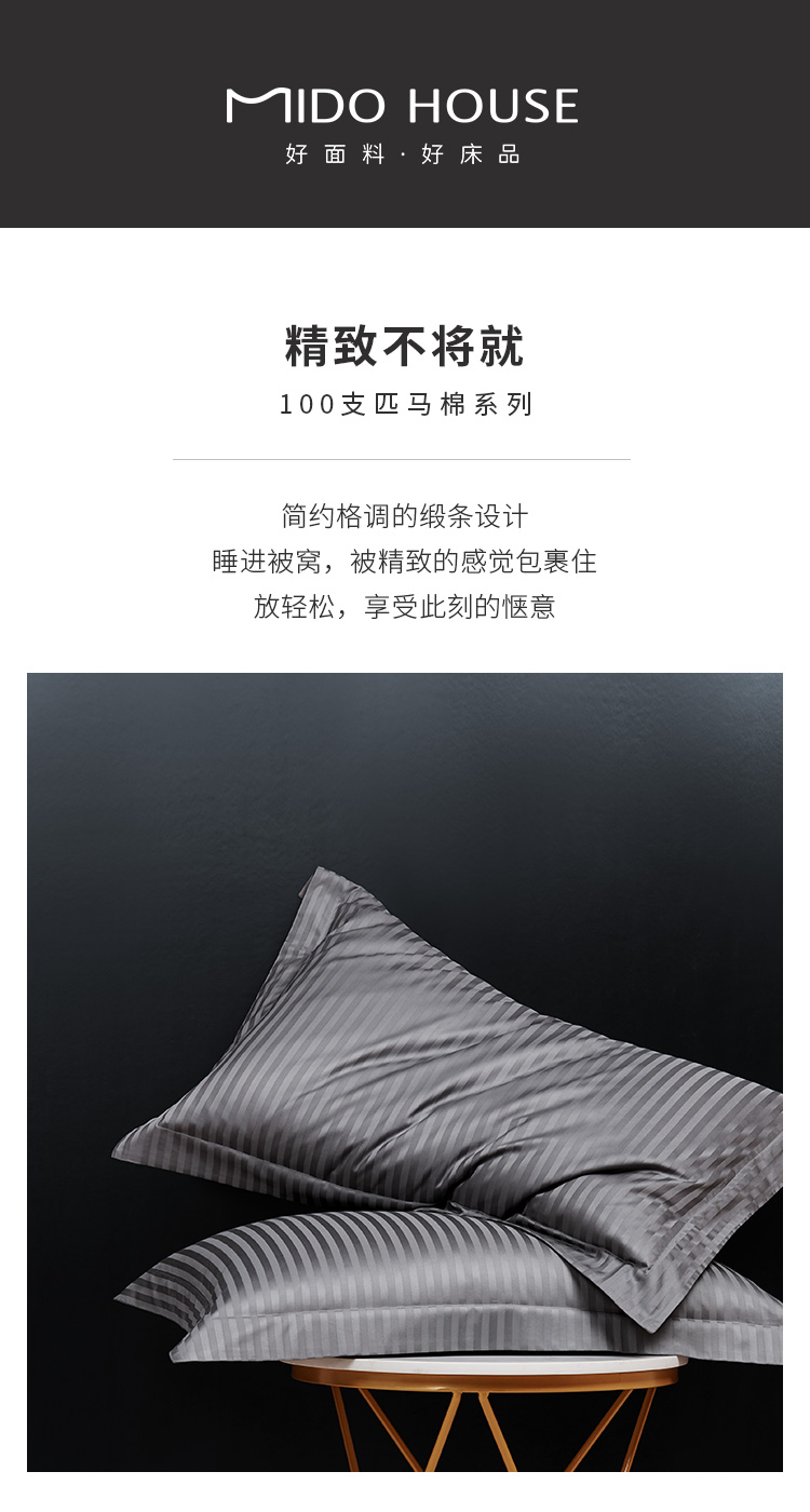 / MIDO HOUSE 高端100支匹马棉600TC提花条纹枕套 一对装