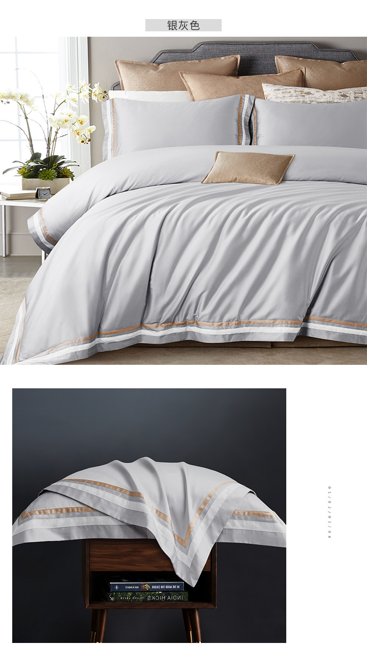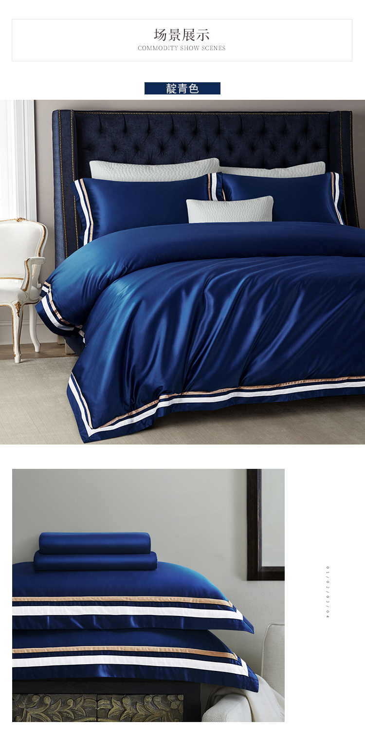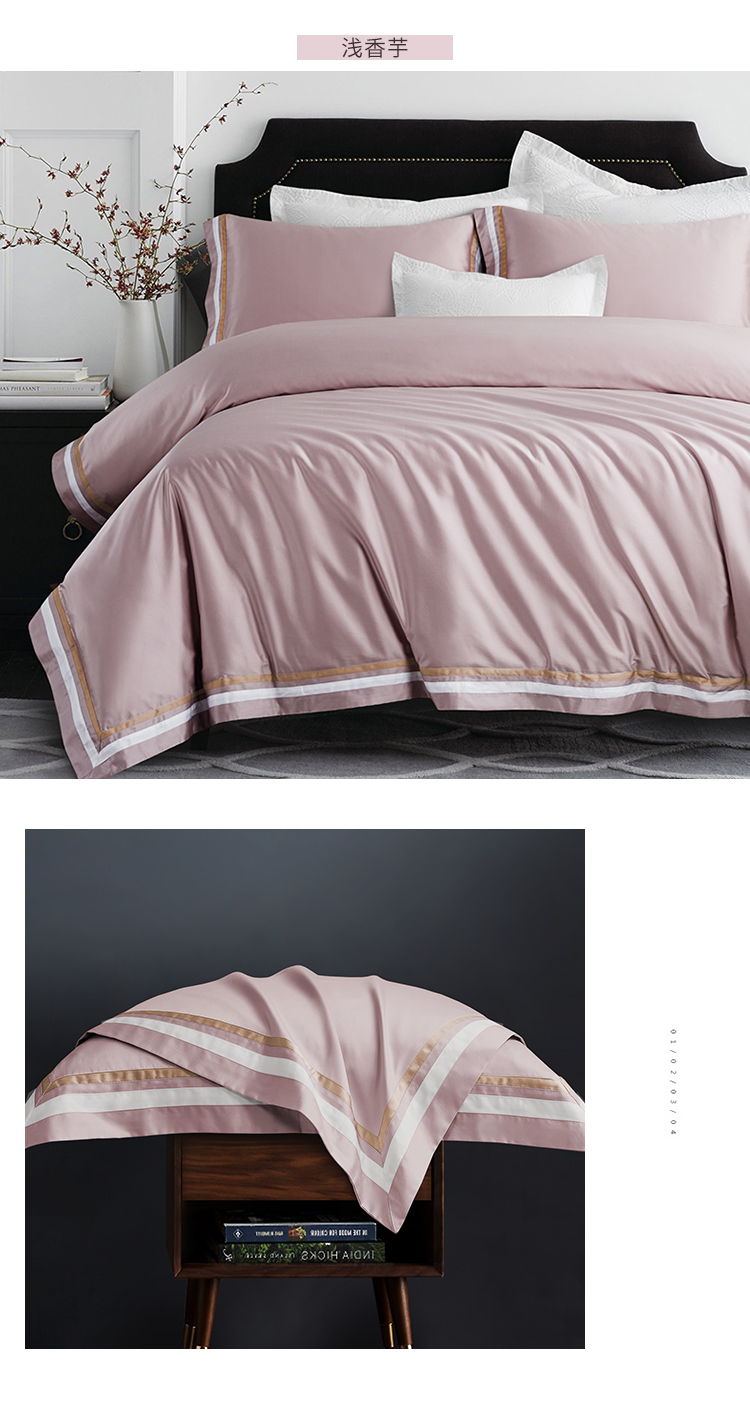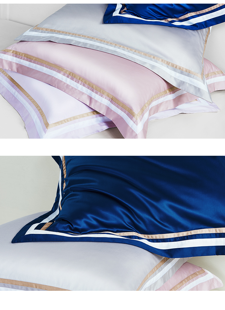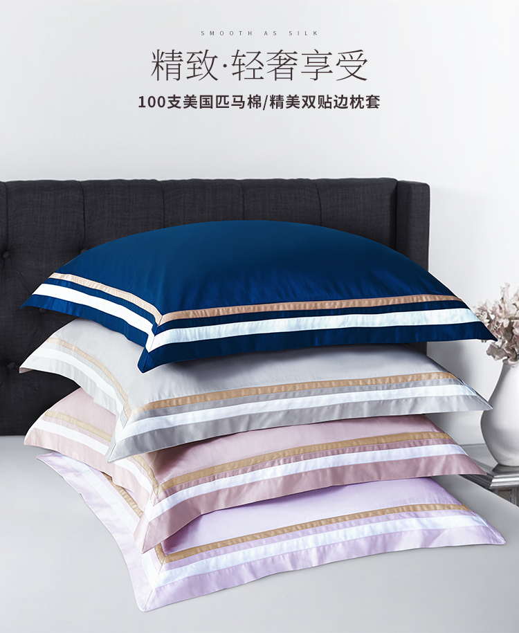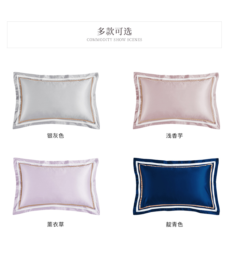 纯棉60支长绒棉贡缎枕套纯色双拼色枕头套信封式全棉枕芯套一对装