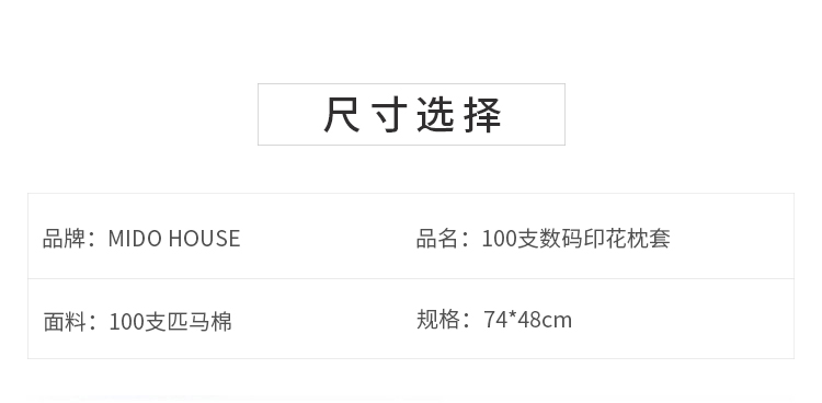 MIDO HOUSE 100支匹马棉美式数码印花枕头套 一对装 48*74cm