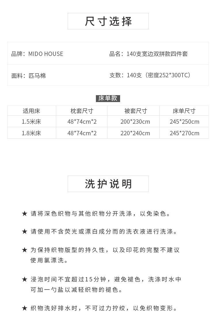 / MIDO HOUSE 140支美国匹马棉简约双拼色宽边四件套