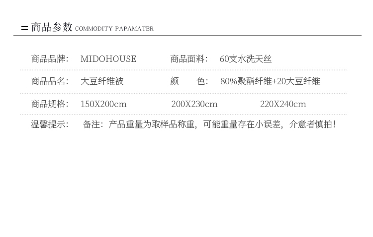 / MIDO HOUSE60支水洗天丝大豆春秋被 被子被芯200*230cm220*240cm